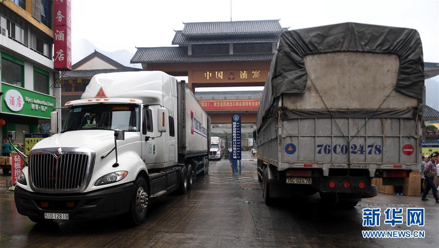 在廣西憑祥市浦寨邊貿(mào)區(qū),東盟國家的貨車進出運貨(1月16日攝)。新華社記者 張愛林 攝