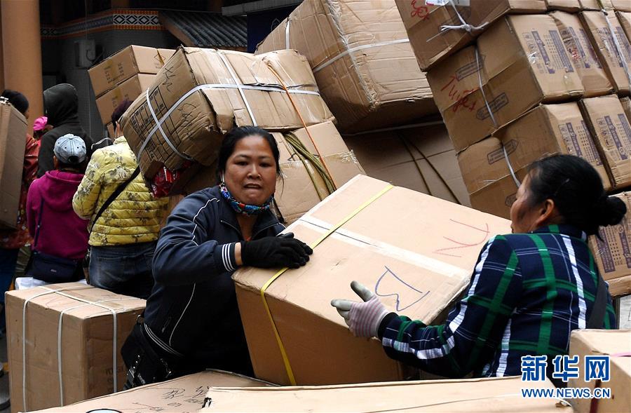 人們在廣西憑祥市浦寨邊貿(mào)區(qū)搬運貨品(1月16日攝)。新華社記者 張愛林 攝