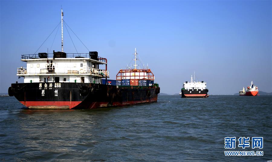 這是在欽州茅尾海上,萬噸海輪陸續(xù)進入欽州港營運貨物(2017年12月18日攝)。新華社記者 張愛林 攝