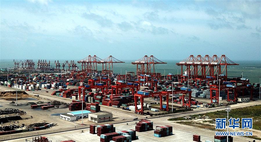 這是廣西欽州保稅港區(qū)碼頭(7月1日無人機拍攝)。新華社記者 張愛林 攝
