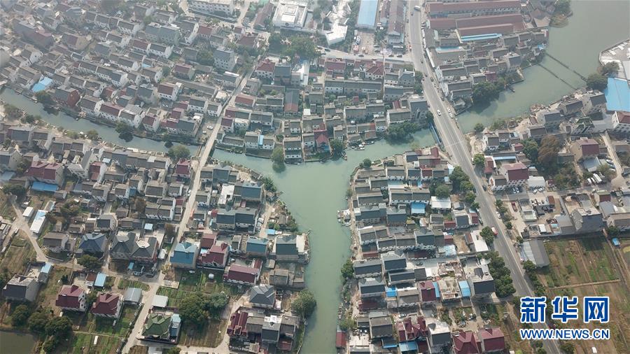 蘇州市吳江區(qū)七都鎮(zhèn)開弦弓村村貌(10月23日無人機拍攝)。近年來,開弦弓村形成了化纖紡織、針織衫編織和水產(chǎn)養(yǎng)殖三大產(chǎn)業(yè),2017年村集體收入268萬元,農(nóng)民人均可支配收入3萬多元。