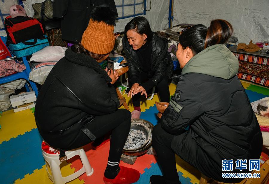 在西藏昌都市江達(dá)縣波羅鄉(xiāng)康扎西安置點(diǎn),群眾在帳篷內(nèi)取暖(11月11日攝)。 西藏自治區(qū)江達(dá)縣波羅鄉(xiāng)康扎西安置點(diǎn),離波羅鄉(xiāng)政府直線距離約3公里,位于一處地勢開闊平緩的山谷中,比堰塞湖水面高出100多米。10月11日金沙江白格段山體滑坡發(fā)生后,當(dāng)?shù)鼐驮谶@里設(shè)立了安置點(diǎn),安置附近受災(zāi)群眾。 新華社記者 劉東君 攝