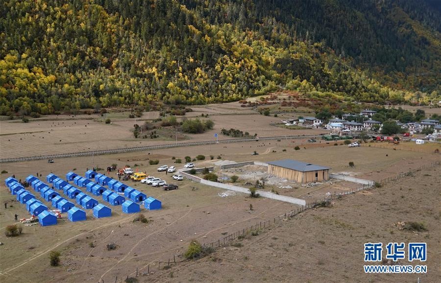10月19日拍攝的在米林縣派鎮(zhèn)尼定村搭建的安置點(diǎn)。 記者從西藏自治區(qū)林芝加拉村雅魯藏布江堰塞湖災(zāi)情應(yīng)急搶險(xiǎn)工作第二場新聞發(fā)布會(huì)上獲悉,19日13時(shí)30分,雅魯藏布江米林縣堰塞體上游水位超過堰塞體,開始自然過流,上游水位正在緩慢下降。目前,各項(xiàng)搶險(xiǎn)救援工作正在有序開展。 新華社記者 覺果 攝