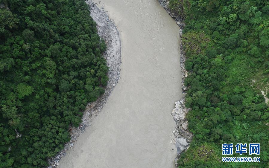 洪峰過境后的西藏雅魯藏布江墨脫段局部畫面(10月20日無人機(jī)拍攝)。 新華社記者劉東君攝