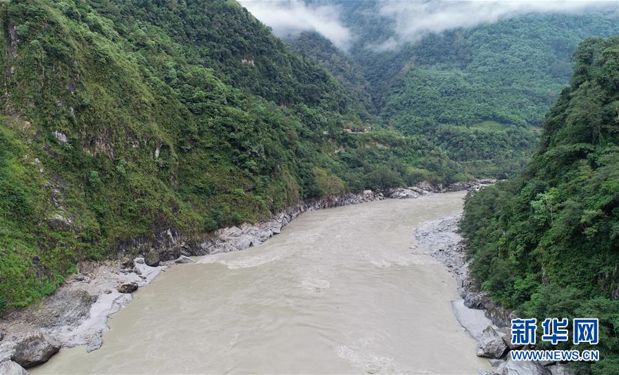 洪峰過境后的西藏雅魯藏布江墨脫段局部畫面(10月20日無人機拍攝)。 新華社記者劉東君攝