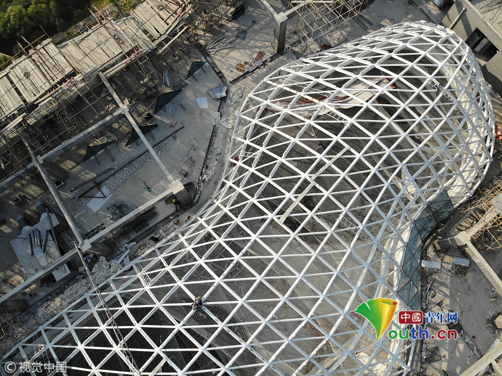 據(jù)了解,這棟大樓的用途為寫字樓,設(shè)計為全玻璃幕墻結(jié)構(gòu),頂部的框架也將裝上玻璃。
