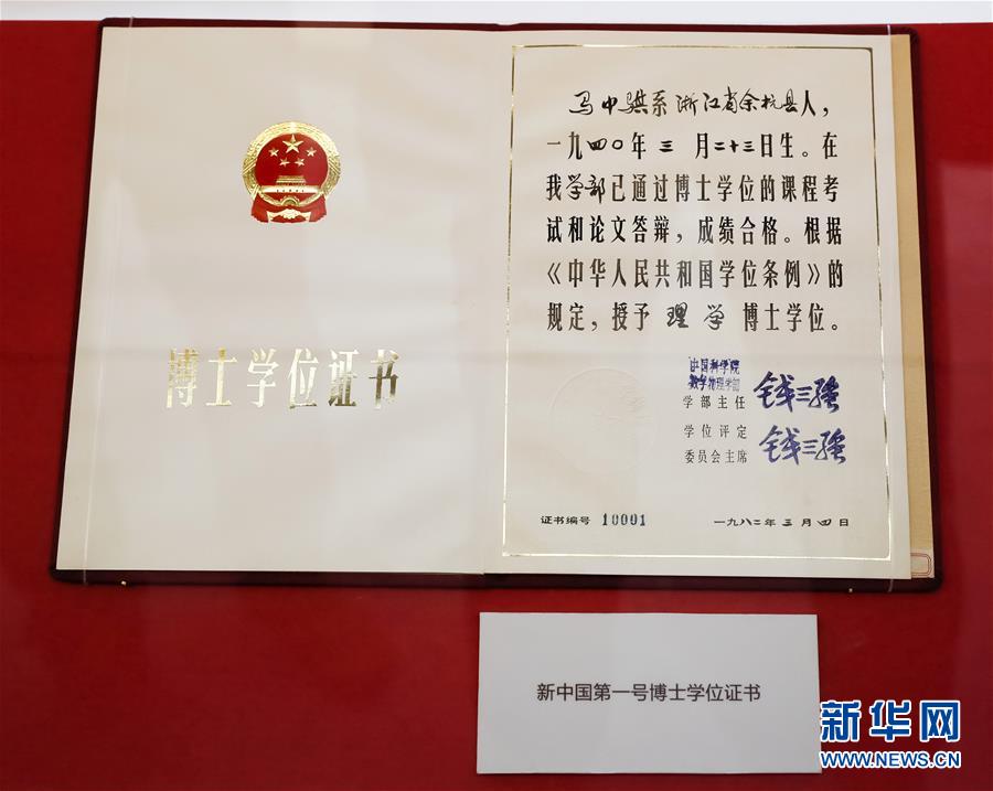 這是在“歷史巨變”展區(qū)拍攝的新中國第一號(hào)博士學(xué)位證書(11月15日攝)。