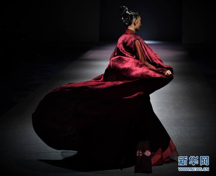 模特在AJ-NAMO藏裝秀上展示藏族設(shè)計(jì)師阿佳娜姆設(shè)計(jì)的時(shí)裝(11月18日攝)。 新華社記者 普布扎西攝