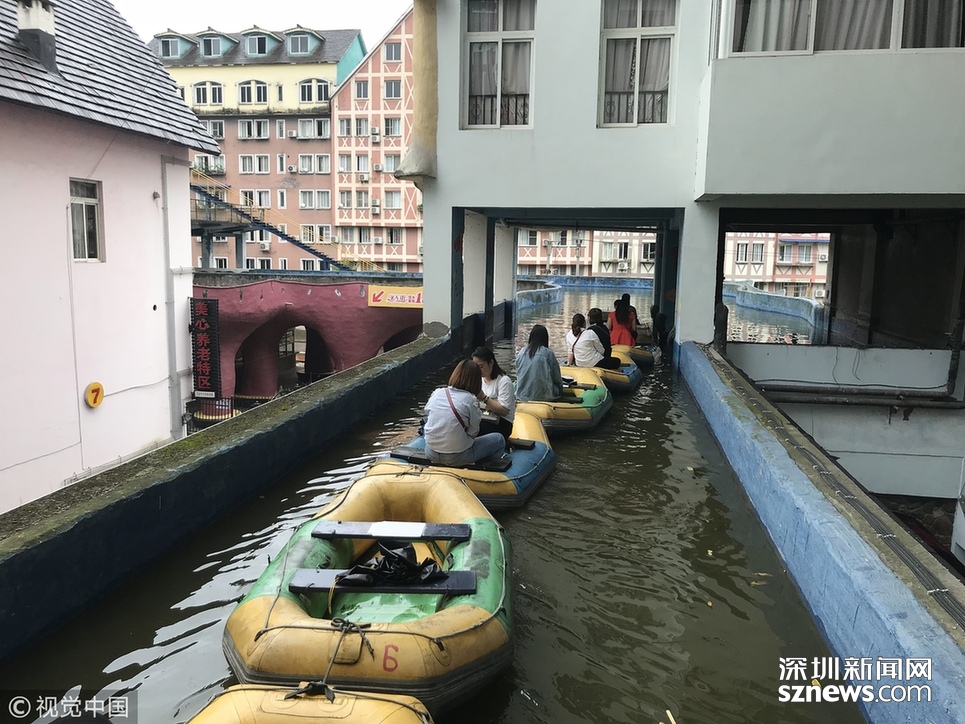 2018年6月20日,重慶涪陵,紅酒小鎮(zhèn)人工運河全長近5公里,2009年開建,先期依梨香溪岸線而建,后期隨著景區(qū)的發(fā)展,運河逐漸拓展為高架橋的“空中運河”,穿樓而過的“室內(nèi)運河”,穿水上樂園而過的“水中運河”。為確保一個水平面,運河見房穿洞,過路搭橋,游客乘坐觀光船或蕩舟其中成為一道獨特的風(fēng)景線。隨著8D魔幻重慶的不斷走紅,該景區(qū)的網(wǎng)紅運河正受到游客的喜愛與“打卡”。