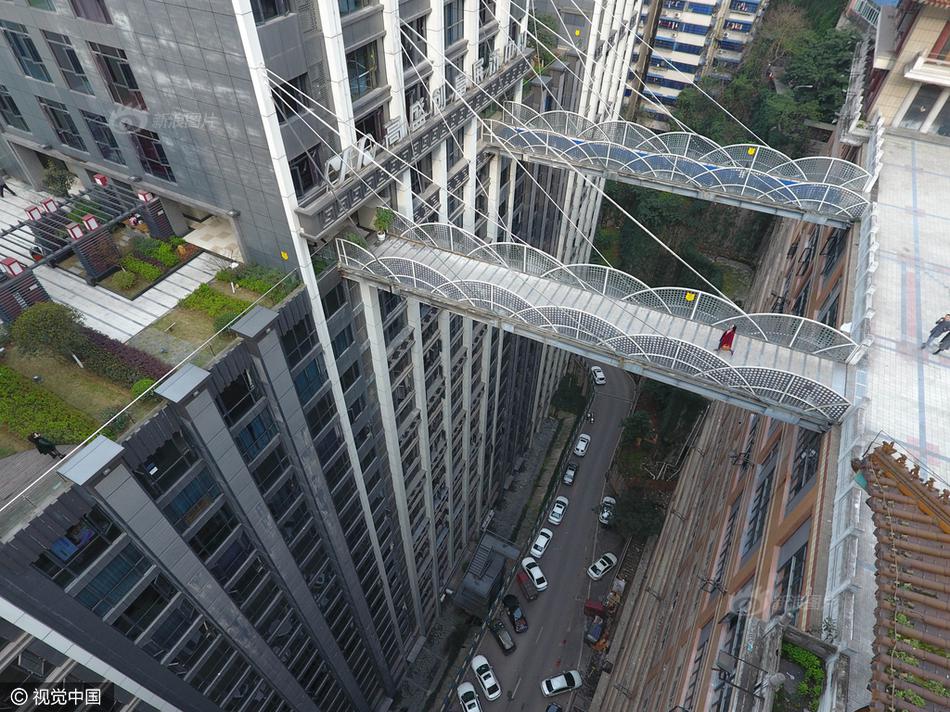 2017年3月16日,重慶,渝中區(qū)一棟大樓從22層架起兩座平行的天橋,連接對面的魁星樓廣場地面。圖片來源:視覺中國 |
