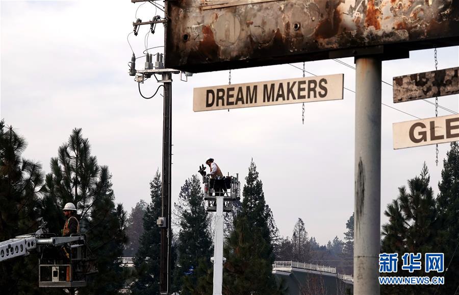 11月20日,在美國加利福尼亞州比尤特縣天堂鎮(zhèn),救援人員在山火廢墟中工作。