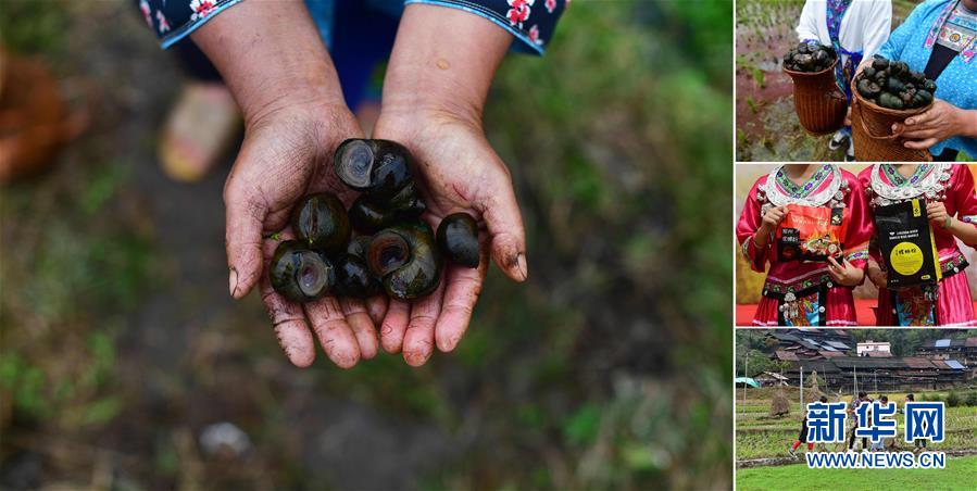 拼版照片:左圖為在拱洞鄉(xiāng)龍令村,貧困戶龍亞手捧剛剛收獲的田螺(11月17日攝);右上圖為龍亞展示收獲的田螺(11月17日攝);右中圖為龍令村養(yǎng)殖的田螺已經(jīng)成為柳州螺螄粉的原材料(10月28日攝);右下圖為龍亞(右一)在稻田里撈田螺(11月17日攝)。今年,拱洞鄉(xiāng)大力發(fā)展稻田養(yǎng)螺產(chǎn)業(yè),目前,全鄉(xiāng)田螺養(yǎng)殖面積突破4000畝,參與的貧困農(nóng)戶有600多戶。 廣西融水苗族自治縣是國家扶貧工作重點縣,全縣“九山半水半分田”,生活生產(chǎn)環(huán)境較為惡劣,脫貧攻堅任務(wù)艱巨,目前還有7.68萬貧困人口。面對經(jīng)濟(jì)發(fā)展落后、貧困面廣且程度深的現(xiàn)狀,當(dāng)?shù)匕衙撠毠耘c創(chuàng)新產(chǎn)業(yè)扶持相結(jié)合,依托生態(tài)資源優(yōu)勢,實施“特色產(chǎn)業(yè)富民行動”,通過發(fā)展特色民族旅游、林下經(jīng)濟(jì)和特色養(yǎng)殖業(yè)等扶貧產(chǎn)業(yè),帶動貧困群眾依靠勤勞的雙手,拔窮根摘窮帽,實現(xiàn)脫貧致富。據(jù)了解,目前全縣貧困戶參與特色產(chǎn)業(yè)發(fā)展的有2.9萬戶,扶貧產(chǎn)業(yè)覆蓋率達(dá)95%。 新華社記者 黃孝邦 攝