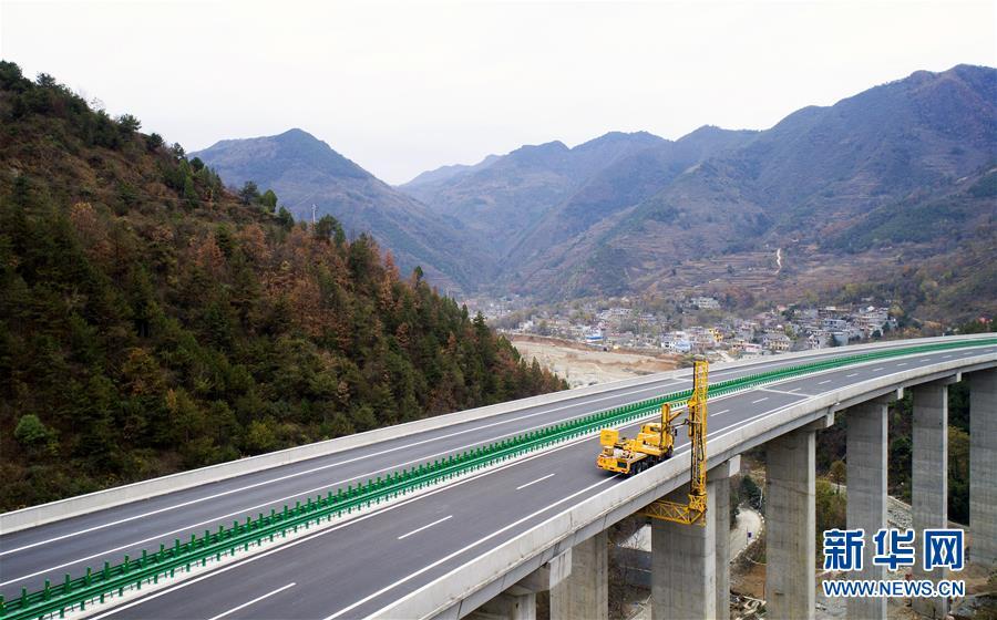 11月20日,在水陽高速公路左家灣特大橋上,橋梁檢測車在進行通車前的檢測作業(yè)(無人機拍攝)。 近日,記者從陜西省交通建設(shè)集團公司了解到,陜西柞水至山陽高速公路已全線貫通即將通車。據(jù)介紹,(柞)水(山)陽高速公路全長78.8公里,開通后將實現(xiàn)包茂高速、福銀高速在陜南商洛地區(qū)的連接,開辟出秦嶺南麓的一條橫向高速大通道,對完善陜西高速公路路網(wǎng)結(jié)構(gòu)、促進陜南區(qū)域經(jīng)濟發(fā)展、加快山區(qū)群眾脫貧致富具有重要意義。 新華社記者劉瀟攝