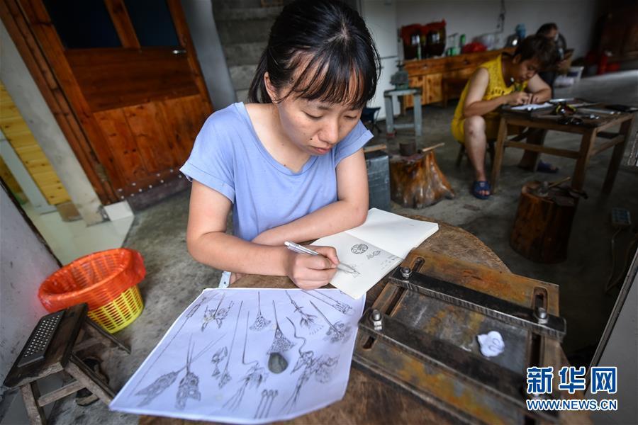 龍懂陽的弟弟龍?zhí)栆彩倾y飾工藝傳人。和哥哥不同,弟弟主打的是銀飾文化體驗游,用自家傳統(tǒng)苗寨開設民宿,游客在此居住的同時,還能學習體驗銀飾品制作。每年暑期一到,家長孩子絡繹不絕。新客源、新銷路、新模式帶動雷山縣銀飾業(yè)不斷發(fā)展壯大,成為脫貧攻堅的重要產業(yè)。2017年,雷山縣控拜、麻料、烏高三個村銀飾品及相關產業(yè)銷售額超過1.5億元,吸引很多外出打工的年輕人回家創(chuàng)業(yè)。苗寨鍛銀聲在綠水青山間響遍千戶,也漸漸走出大山,聲名遠播。新華社記者 李芒茫 攝