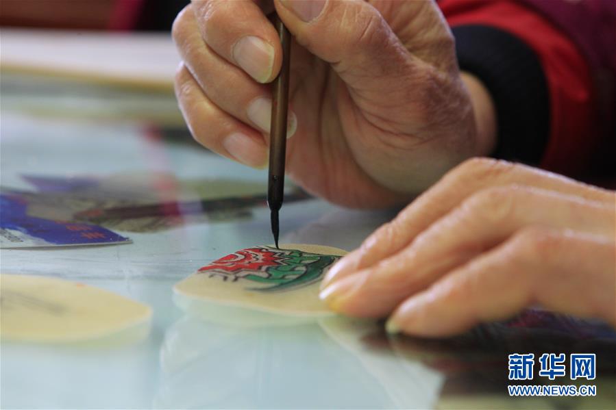 11月20日,在浙江海寧市南關廂歷史街區(qū),張坤榮在給皮影道具上彩。新華社記者隋先凱攝