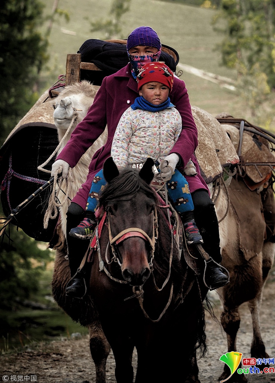 中國青年網(wǎng)北京9月13日電 2018年9月11日,新疆阿勒泰美麗的托勒海特夏牧場天氣逐漸變冷,哈薩克族牧民整理好行裹,抱著孩子,趕著牛羊,浩浩蕩蕩向秋牧場遷徙。