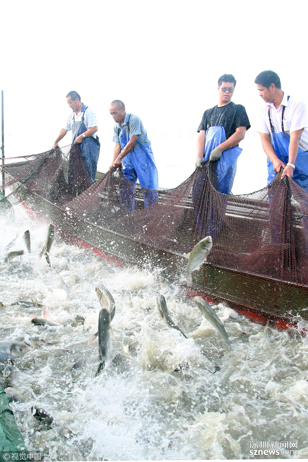 2018年6月26日,江蘇省常州市嘉澤鎮(zhèn)捕撈村的漁民組織夏季捕撈,一網(wǎng)魚達(dá)五萬余斤,以鰱魚為主,供應(yīng)市場需求。夏捕的魚價較平時有所上漲,漁民粗略估計可增收上萬余元。