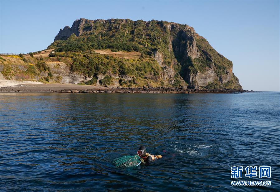 11月23日,一名海女在韓國濟州島的一處海岸附近作業(yè)。新華社記者王婧嬙攝