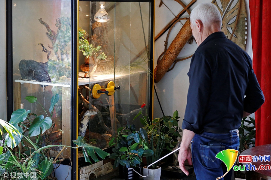 除蜥蜴和鱷魚散養(yǎng)外,Philippe Gillet專門有毒的眼鏡蛇蜘蛛等制作了“起居室”。