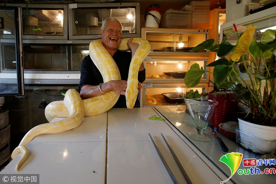 男子與400多只爬行動(dòng)物生活在一起