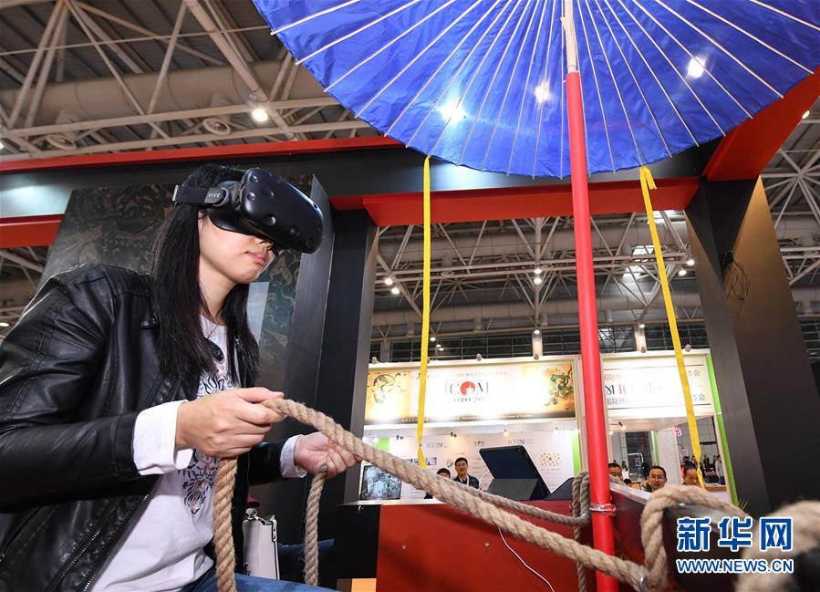 11月23日,參觀者在使用VR眼鏡體驗(yàn)虛擬現(xiàn)實(shí)考古場景。新華社記者李賀攝