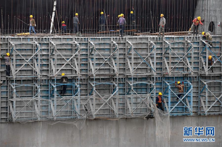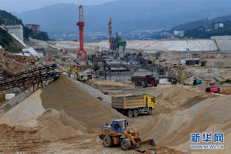 11月23日,建設者在福建閩江水口水電站壩下工程工地加緊施工。