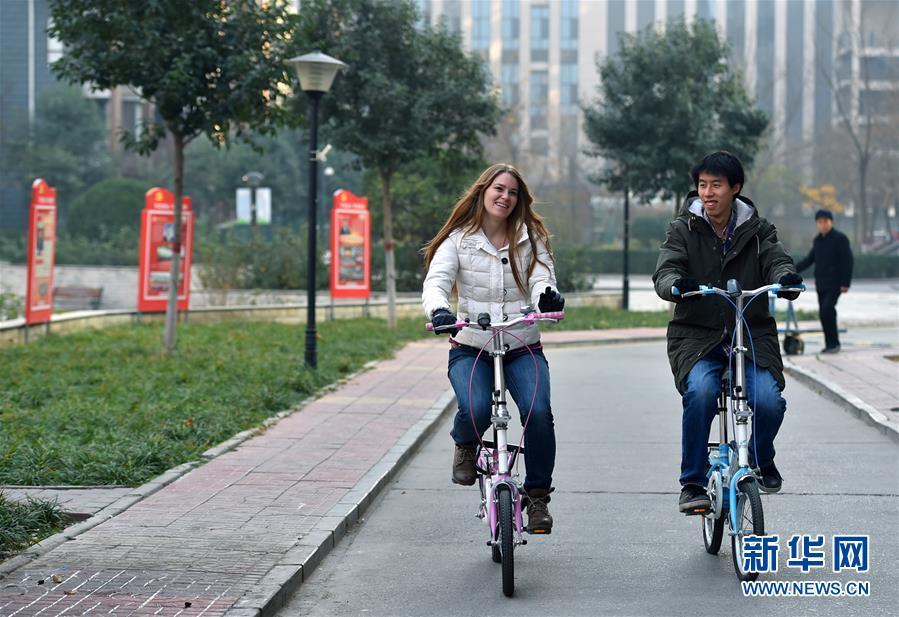 11月24日,艾米莉和愛(ài)人郭了達(dá)一起騎車出行。 新華社發(fā)(張曉峰 攝)