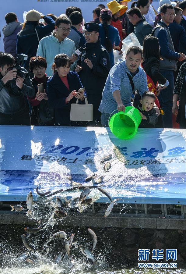 當(dāng)日,“2018放魚(yú)滇池暨滇池土著魚(yú)類放流生態(tài)保護(hù)行動(dòng)”在昆明滇池湖畔舉行,包括20萬(wàn)尾滇池金線鲃、云南光唇魚(yú)在內(nèi)的滇池土著魚(yú)類以及5萬(wàn)余尾鰱、鳙魚(yú)在滇池放流。 據(jù)統(tǒng)計(jì),滇池最多的時(shí)候生活著24種土著魚(yú),目前除了銀白魚(yú)自然存在外,2010年實(shí)現(xiàn)了滇池金線鲃的人工增殖放流,2017年又讓云南光唇魚(yú)實(shí)現(xiàn)了回歸。 新華社記者江文耀攝