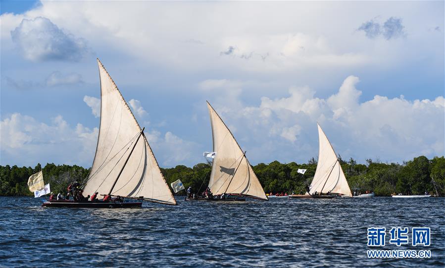 11月24日,拉穆居民在肯尼亞東部印度洋上比賽獨(dú)桅三角帆船。這種帆船曾是東非海洋貿(mào)易的主要交通工具,拉穆本地居民至今還以能駕馭三角帆船為榮。