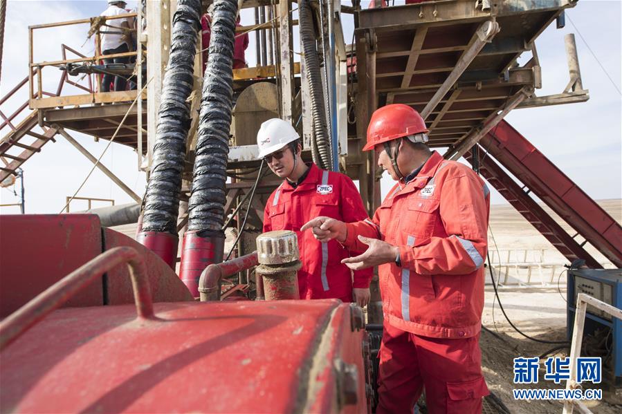 11月20日,在埃及明亞省,中曼石油埃及分公司總經(jīng)理李偉(左)在鉆井現(xiàn)場(chǎng)查看。 2017年,中國(guó)中曼石油公司與阿聯(lián)酋海灣集團(tuán)簽訂合同,為該集團(tuán)在埃及沙漠中的大型農(nóng)業(yè)項(xiàng)目鉆探300口水井。根據(jù)合同,中曼石油將先期完成30口井的試鉆探,剩余水井將以每月7口的速度交付。目前有超過(guò)200名工人在鉆井現(xiàn)場(chǎng)作業(yè),大部分是埃及本地人。 新華社記者李碧念攝