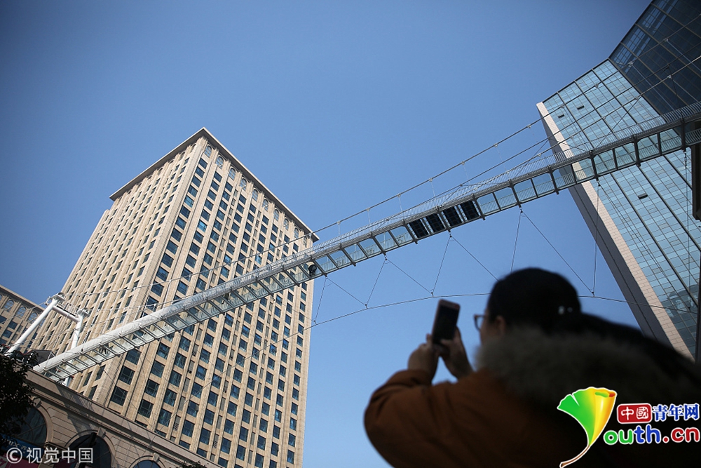 2018年11月28日,石家莊市區(qū)內的一座玻璃吊橋在網絡上走紅,游客們置身于透明的玻璃吊橋上,望著地面川流不息的車輛,伴隨玻璃破裂的特效聲,不禁膽戰(zhàn)心驚。這座玻璃吊橋位于石家莊南二環(huán)附近,橋體橫跨塔通大街,長100米,高30米,。橋面由52塊特質玻璃構成,其中4塊為特效玻璃,游客腳踩上去就會發(fā)出玻璃破裂的聲音。