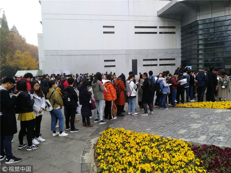 2018年12月2日,考生在南京林業(yè)大學(xué)考點(diǎn)進(jìn)場(chǎng)參加考試。蘇陽(yáng)/視覺中國(guó)