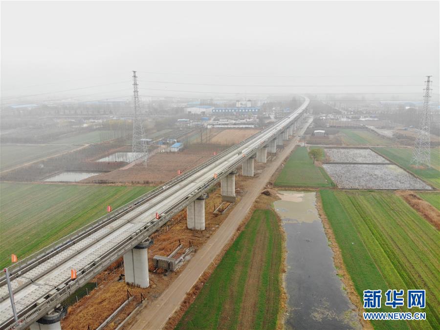 12月2日拍攝的魯南高鐵山東臨沂段(無人機拍攝)。 新華社記者 邢廣利攝