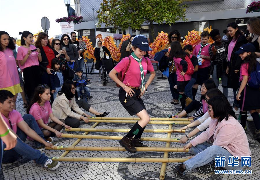 2018年6月16日,在葡萄牙阿威羅舉行的端午龍舟巡游活動開幕式上,阿威羅大學(xué)孔子學(xué)院的學(xué)生表演竹竿舞。 位于伊比利亞半島西南部的歐洲古國葡萄牙,山清水秀、風(fēng)景如畫。它東、北連接西班牙,西、南瀕臨大西洋。葡萄牙現(xiàn)有人口1029.1萬,國土面積約9.22萬平方公里,首都為里斯本,官方語言為葡萄牙語。 新華社記者張立云攝