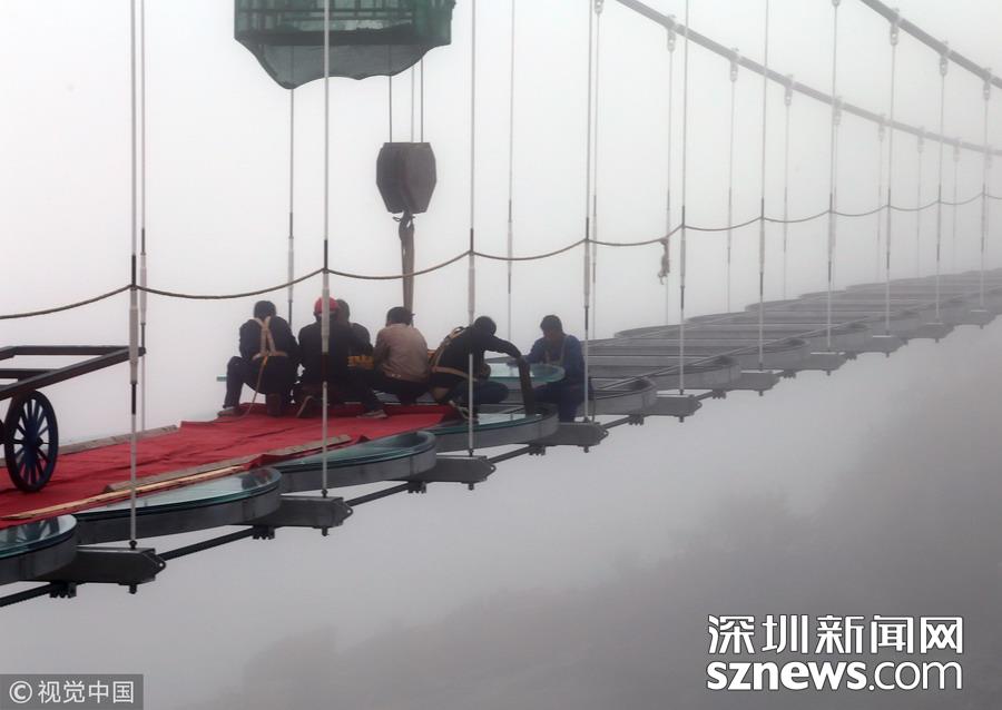 深圳新聞網(wǎng)訊 2018年12月3日,在浙江玉環(huán)市上棧頭玻璃吊橋建設(shè)工地上,工人們正在北端橋頭鋪設(shè)橋面4厘米厚的玻璃,預(yù)計46個箱梁的玻璃全部鋪設(shè)完成需到5日,然后再進(jìn)入安裝兩側(cè)護(hù)欄和拉攀抗風(fēng)拉索,吊橋工程竣工定于23日,準(zhǔn)備在2019年元旦試運行。