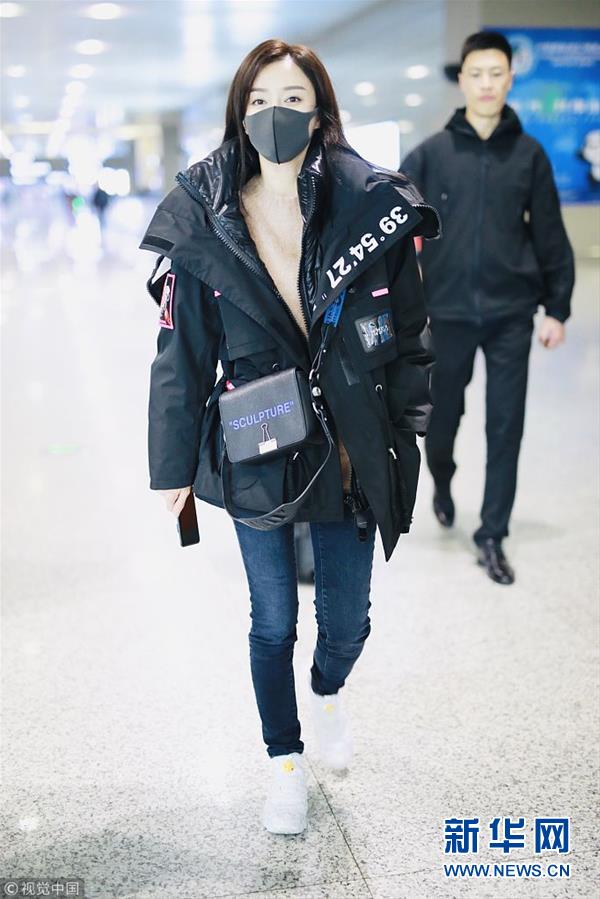 秦嵐潮味棉服亮相機場 口罩遮面露甜笑
