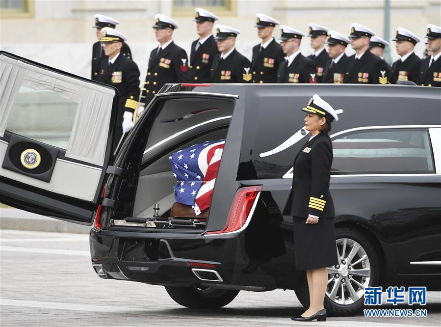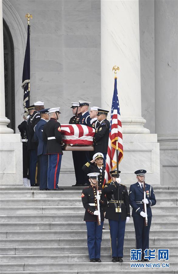 美國(guó)前總統(tǒng)老布什的遺體3日下午運(yùn)抵首都華盛頓,安放在國(guó)會(huì)大廈圓頂大廳,接受吊唁。