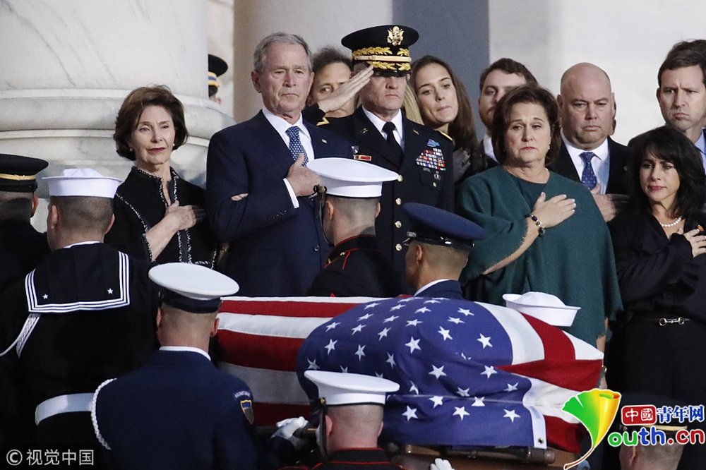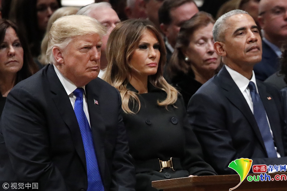 布什家族成員、現(xiàn)任總統(tǒng)特朗普、前總統(tǒng)奧巴馬等美國(guó)政界人士以及多名國(guó)際政要出席,為老布什送行。