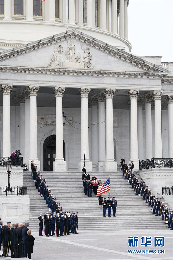 12月3日,在美國(guó)首都華盛頓,美國(guó)前總統(tǒng)喬治·赫伯特·沃克·布什(老布什)的靈柩抵達(dá)國(guó)會(huì)大廈。