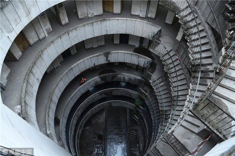 魔幻重慶再添新景觀 公交車穿8層空心圓筒樓