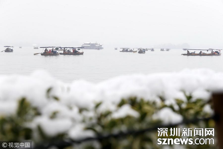 2018年12月8日,杭州,當(dāng)日市區(qū)普降大雪,市民和游客扎堆涌入西湖景區(qū),拍攝最美雪景照片以及為自己留影。