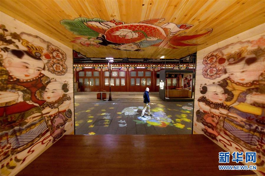12月4日,游客在楊柳青古鎮(zhèn)步行街上欣賞年畫主題燈光。 近日,天津市西青區(qū)楊柳青古鎮(zhèn)在步行街新增9組以楊柳青年畫代表作為主題的動態(tài)夜景燈光,講述古鎮(zhèn)與年畫的歷史。 新華社記者 岳月偉 攝