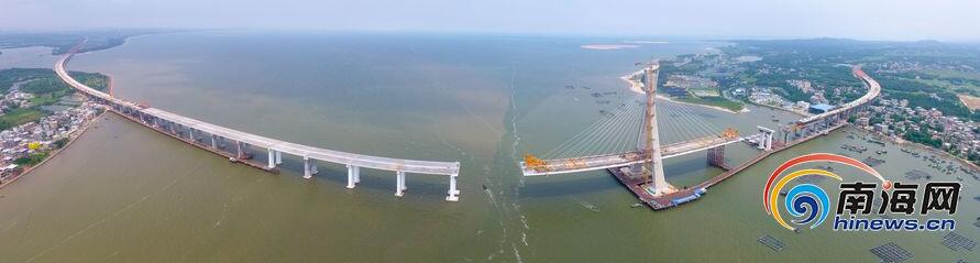 據悉,海南鋪前大橋目前主橋和引橋樁基、承臺、墩身的施工已全部完成,主橋鋼箱梁吊裝完成71%,引橋混凝土箱梁施工完成92%,力爭年底通車。