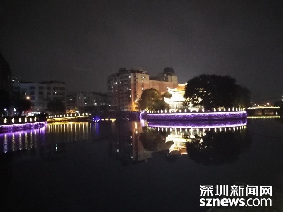 百里塘河穿市而過 ,燈光水光,相映成趣。 吳超攝
