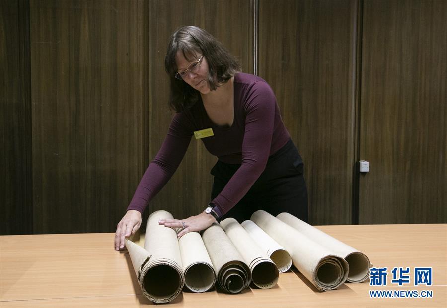 11月2日,在英國紐卡斯?fàn)柕奶┒鳌枡n案館,檔案管理員瑞秋·吉爾介紹致遠(yuǎn)艦設(shè)計(jì)圖紙。 新華社記者日前在紐卡斯?fàn)柼┒鳌枡n案館查找北洋海軍史料時(shí)發(fā)現(xiàn)一套七張、檔案名為“中國巡洋艦舵機(jī)設(shè)計(jì)圖”的原始圖紙。塵封百年,甲午海戰(zhàn)中抗擊日艦后沉沒的清北洋海軍致遠(yuǎn)艦部分原廠設(shè)計(jì)圖紙?jiān)谄浣ㄔ斓亍~卡斯?fàn)柺械囊患覚n案館首次被發(fā)現(xiàn),為打撈那段悲壯的歷史提供了重要參考。 新華社記者 韓巖 攝