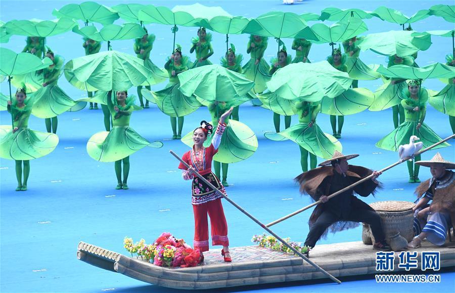 12月10日,廣西壯族自治區(qū)成立60周年慶祝大會(huì)在廣西體育中心隆重舉行。這是慶祝大會(huì)上的群眾文藝表演。 新華社記者 周華 攝
