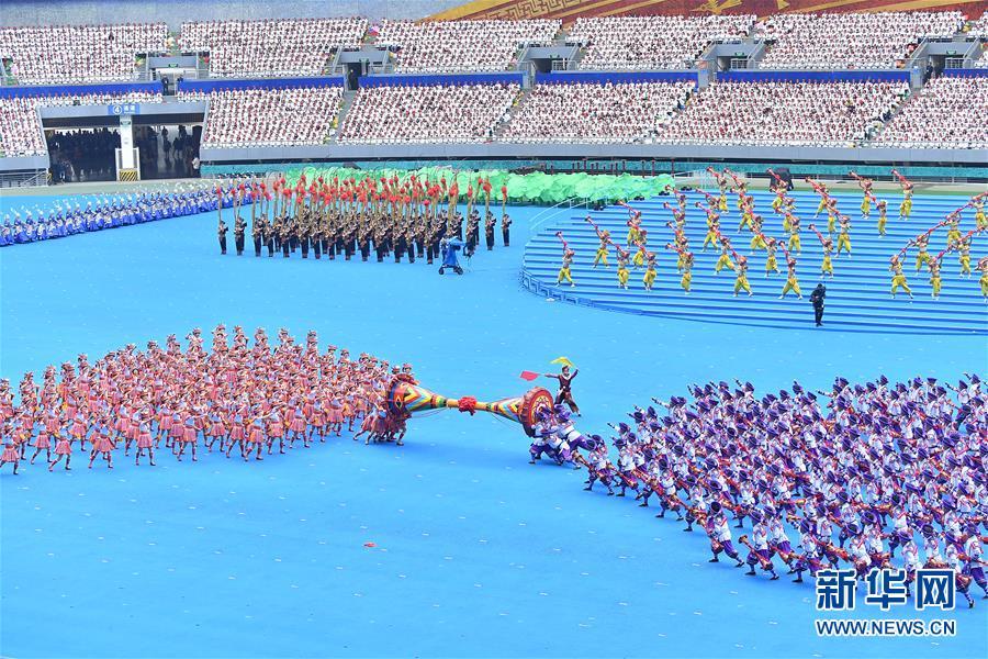 12月10日,廣西壯族自治區(qū)成立60周年慶祝大會在廣西體育中心隆重舉行。這是慶祝大會上的群眾文藝表演。 新華社記者 李鑫 攝