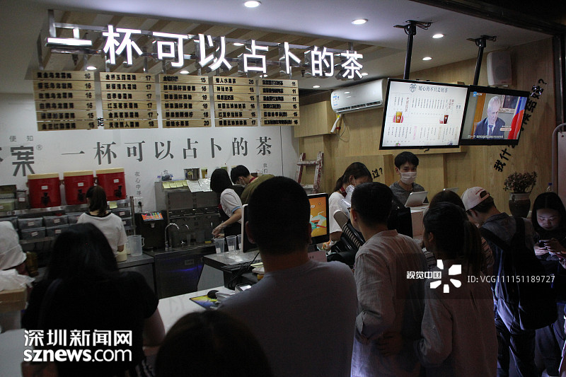 2018年4月21日,重慶,萬達(dá)廣場(chǎng)附近有一家新開業(yè)的網(wǎng)紅答案茶的冷飲店,這家答案茶冷飲店人氣異?;鸨?,門前已排起了兩條“長(zhǎng)龍”。