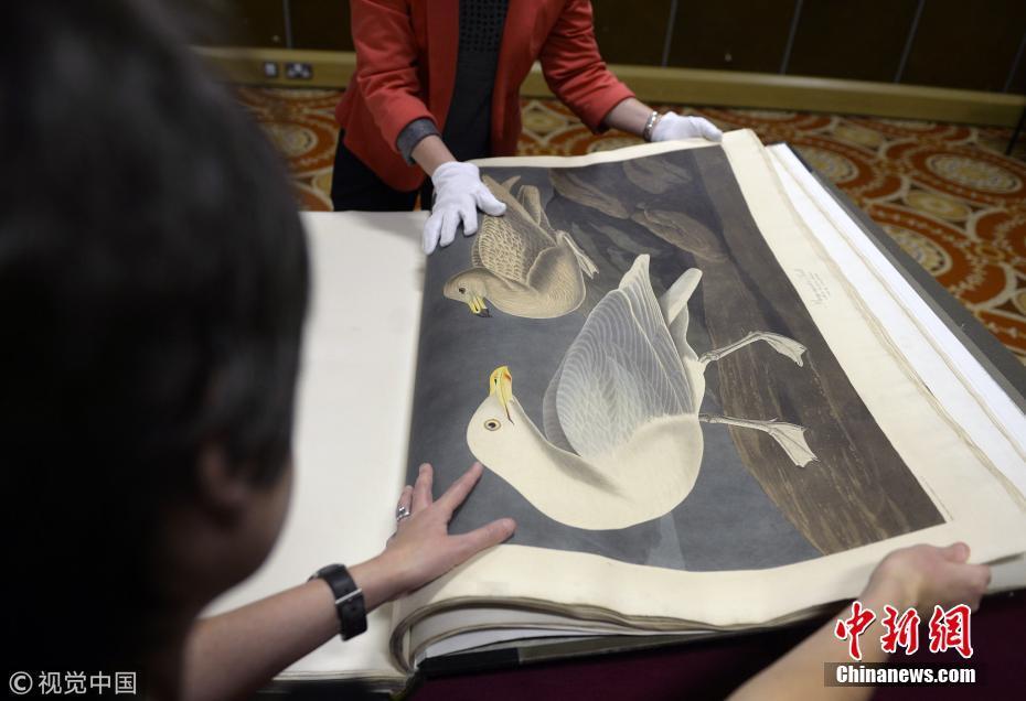 該書曾被譽(yù)為19世紀(jì)最偉大和最具影響力的著作,目前世界上僅存119本。由私人收藏的一本在2010年英國倫敦拍賣會上拍出了將近732.13萬英鎊(約合人民幣7657.79萬元)的高價(jià),成為“世界上最昂貴的圖書”。圖片來源:視覺中國