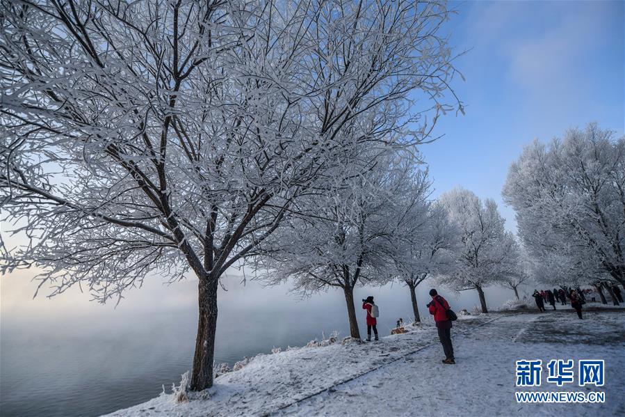 12月12日,游人在吉林省吉林市豐滿(mǎn)區(qū)吉豐東路松花江畔觀賞霧凇美景。 新華社記者張楠攝